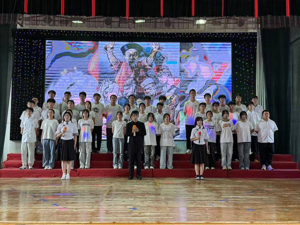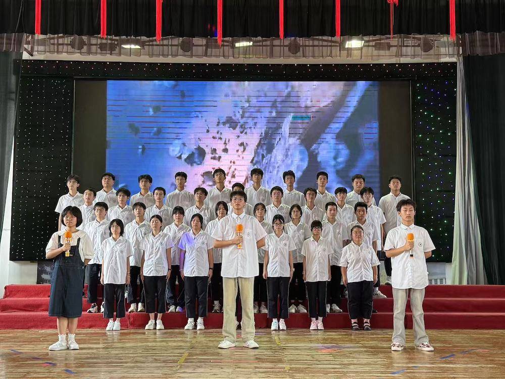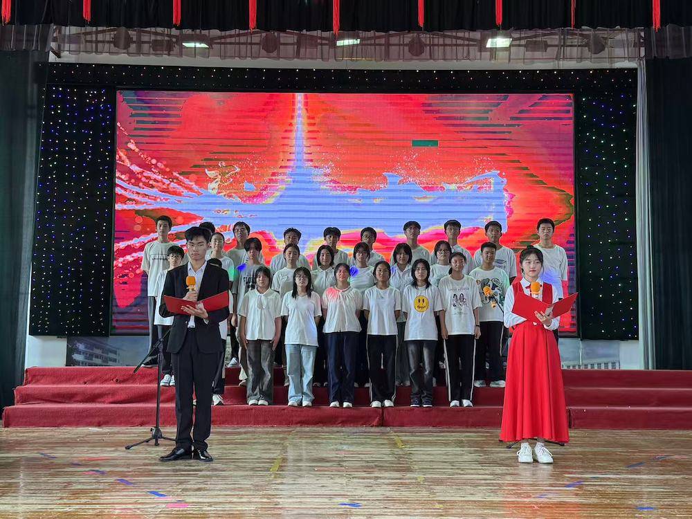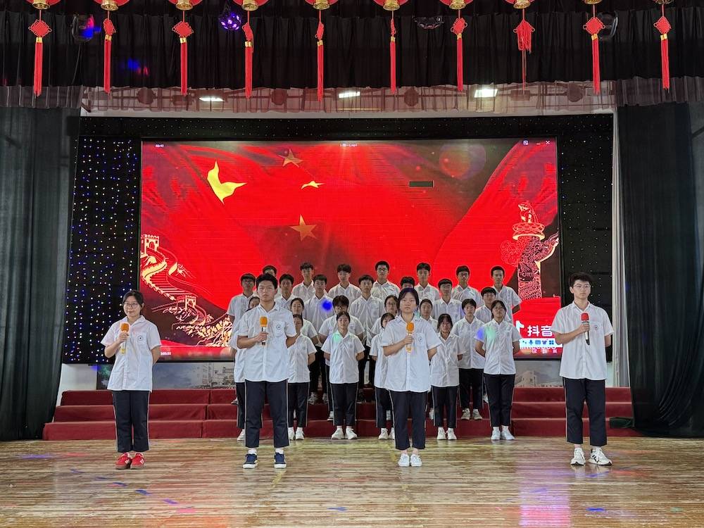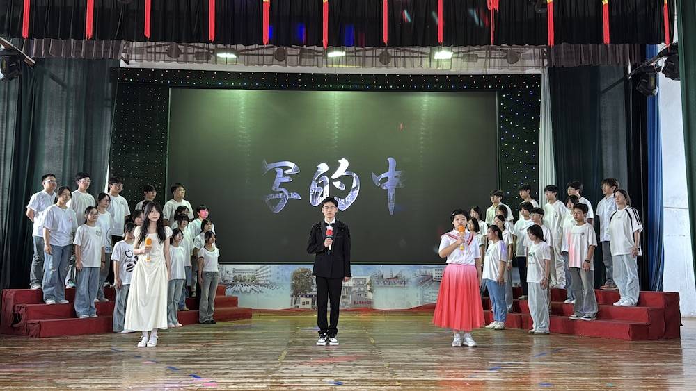 伴随着悠扬的背景音乐,比赛正式开启。8支班级代表队依次登台。高一1班《青春中国强国有我》以少年之声立报国之志,铿锵语调中满是“愿以吾辈之青春,捍卫盛世之中华”的赤诚;高一3班《八十年的刻度》循着时间轨迹铺展史诗,平缓而有力的诵读让在场师生重温烽火岁月与发展征程;高二4班《大写的中国》字字千钧,从山河壮阔到文脉传承,将民族自豪感娓娓道来;高一4班《聆听时代的回响》、高二2班《百年芳华》回溯百年党史,高一2班《青春中国》礼赞青春力量,各展风采;高二3班《七子之歌》声情婉转,诉说对家国统一的深切眷恋;高二1班《觉醒年代》则以饱满情绪复刻先辈热血,唤起全场对初心的共鸣,每段表演都赢得雷鸣般的掌声。
