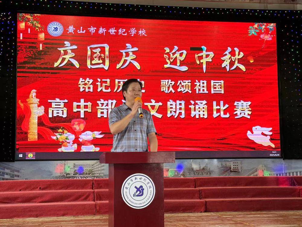 金风送爽,文脉流芳。为引导学子铭记历史脉络,厚植家国情怀,近日,黄山市新世纪学校高中部“铭记历史 歌颂祖国”诗文诵读比赛在师生的热切期盼中拉开帷幕。高中部全体师生齐聚现场,在激昂与深情的诵读声中,共赴一场红色文化的精神洗礼。