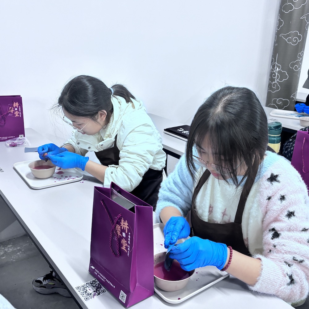 沉浸式漆器打磨技艺体验环节备受学子青睐,导师团队与场馆馆员紧密联动、分工协作,示范打磨流程、详解操作技巧,从工具选取、手法规范到力度掌控全程精准帮扶,耐心答疑解惑。学子们沉浸式投入动手实践,在一磨一琢中体悟非遗工艺的匠心坚守与精湛技法,真切感受徽州漆器的独特韵味,充分彰显“导-师-制+”实践育人、精准赋能的育人成效。
