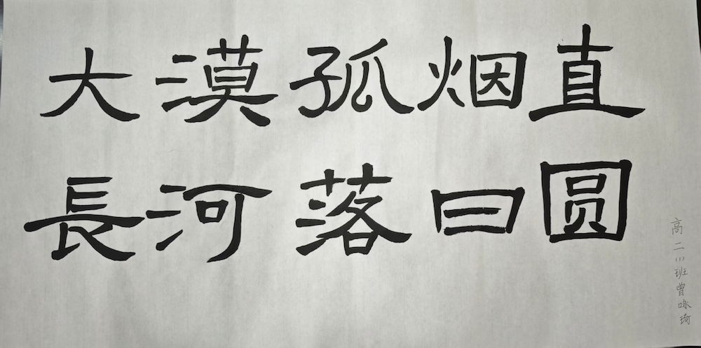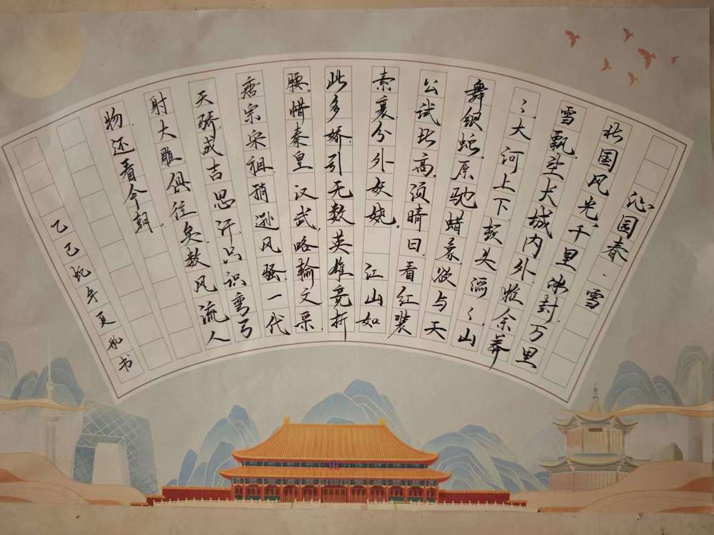 比赛期间,同学们热情高涨,利用课余时间精心创作。参赛作品分为硬笔、软笔两大类,内容涵盖经典诗词、名言警句等。硬笔作品中,字迹或工整娟秀,或挺拔刚劲,尽显书写功底;软笔作品里,同学们挥毫泼墨,楷书端庄方正、行书行云流水、隶书古朴典雅,每一幅作品都饱含对汉字艺术的敬畏,彰显着学子们的精神风貌。笔墨之间,不仅是点画结构的精妙呈现,更承载着对中华传统文化的深刻感悟。