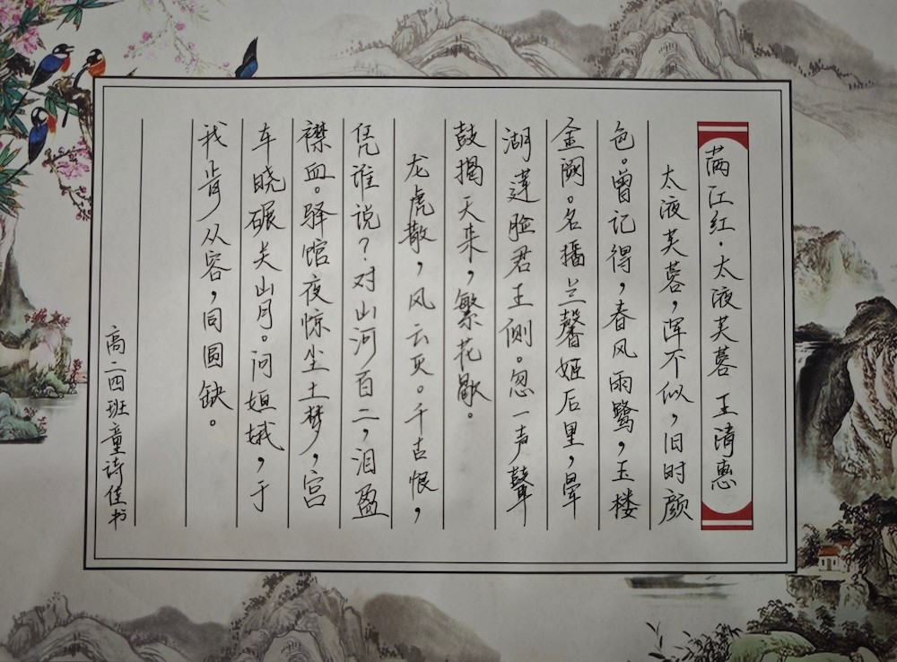高中部全体语文教师担任本次活动评委。评审过程中,教师们不仅从专业维度对作品进行点评,更依托“导-师-制+”育人网络,将书法指导与文化传承、审美培育有机结合,秉持公平、公正、公开的原则对所有参赛作品进行细致评审。经过层层筛选,最终评选出一等奖3名、二等奖7名、三等奖9名及优秀奖若干。