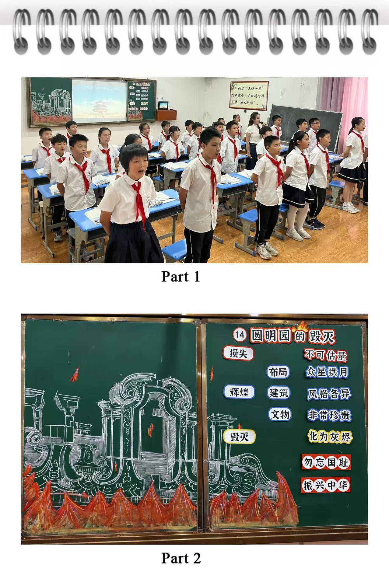 此次《圆明园的毁灭》观摩课,是我校语文教学与爱国主义教育融合的一次成功实践。它不仅让学生在文字间触摸历史温度、在思辨中厚植家国情怀,更让教师们在教研中凝聚了“以文化人、以史育人”的共识。未来,我校将继续深耕课堂主阵地,让更多这样有深度、有温度的教学探索落地生根,让爱国主义的种子在学生心中长成参天大树,为培养新时代强国少年筑牢精神根基。