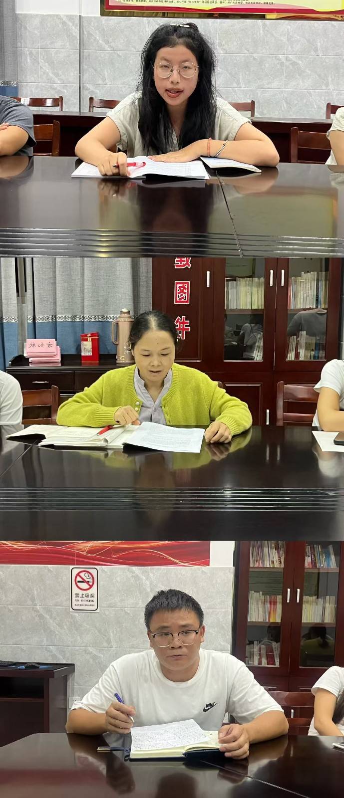 紧接着,小学部质管主任潘吉吉、教研组长叶文莉以及小学部语文教师方雯君、姚美芳,初中部周红翠老师、高中部王建莉老师作评课发言。各位老师充分肯定了本节课的突出优点:情境创设极具代入感,“品辉煌—痛毁灭—思原因”的递进式设计逻辑清晰,实现了语文工具性与人文性的深度融合;同时客观指出课堂时间分配尚有优化空间,部分小组讨论未能充分展开。研讨中,老师们还碰撞出跨学段教学衔接的火花,提出可拓展课外史料以拓宽学生历史视角,为语文跨学科教学、深化爱国主义教育融合路径提供了更多鲜活思路。