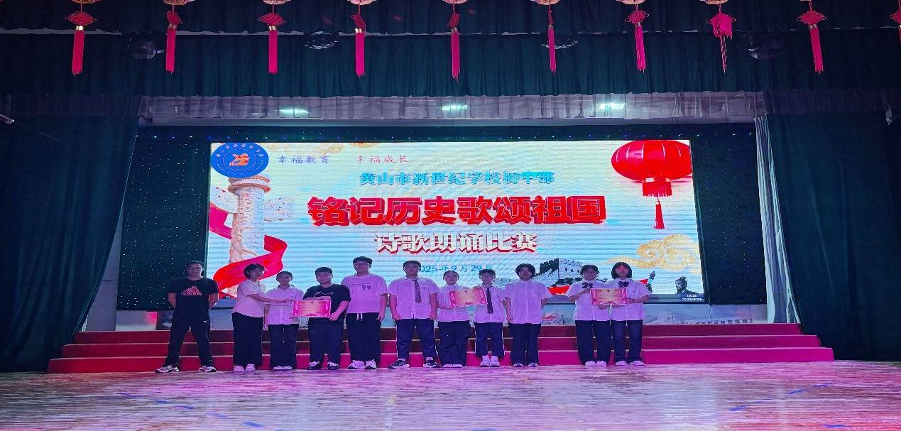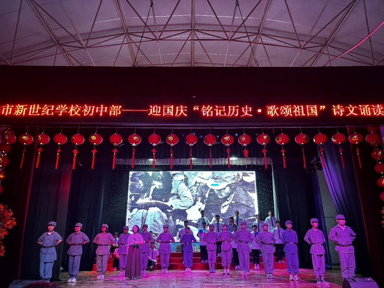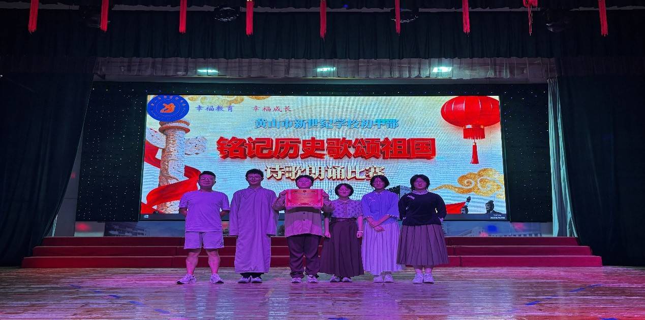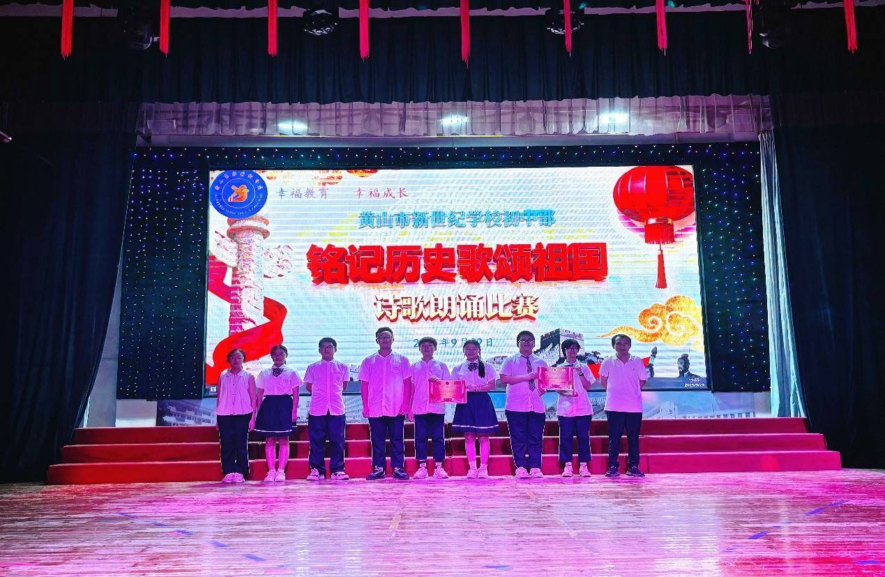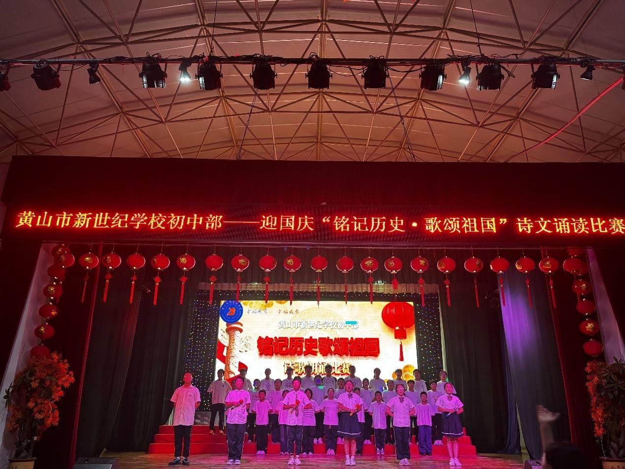 为喜迎国庆,引导学生铭记历史、厚植爱国情怀,9月29日晚,黄山市新世纪学校初中部在校体育馆举办了“迎国庆·铭记历史”歌颂祖国诗歌朗诵比赛。
