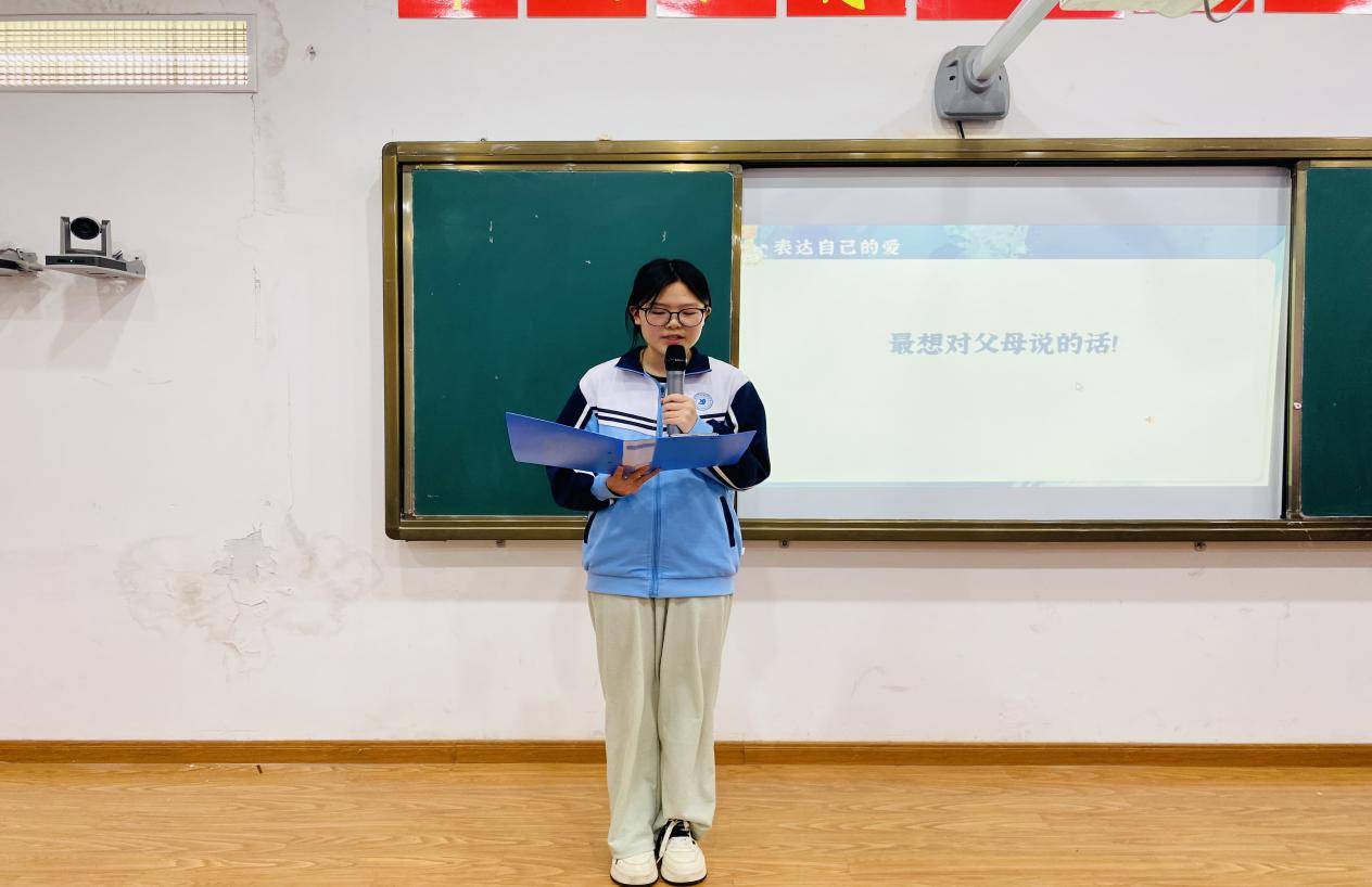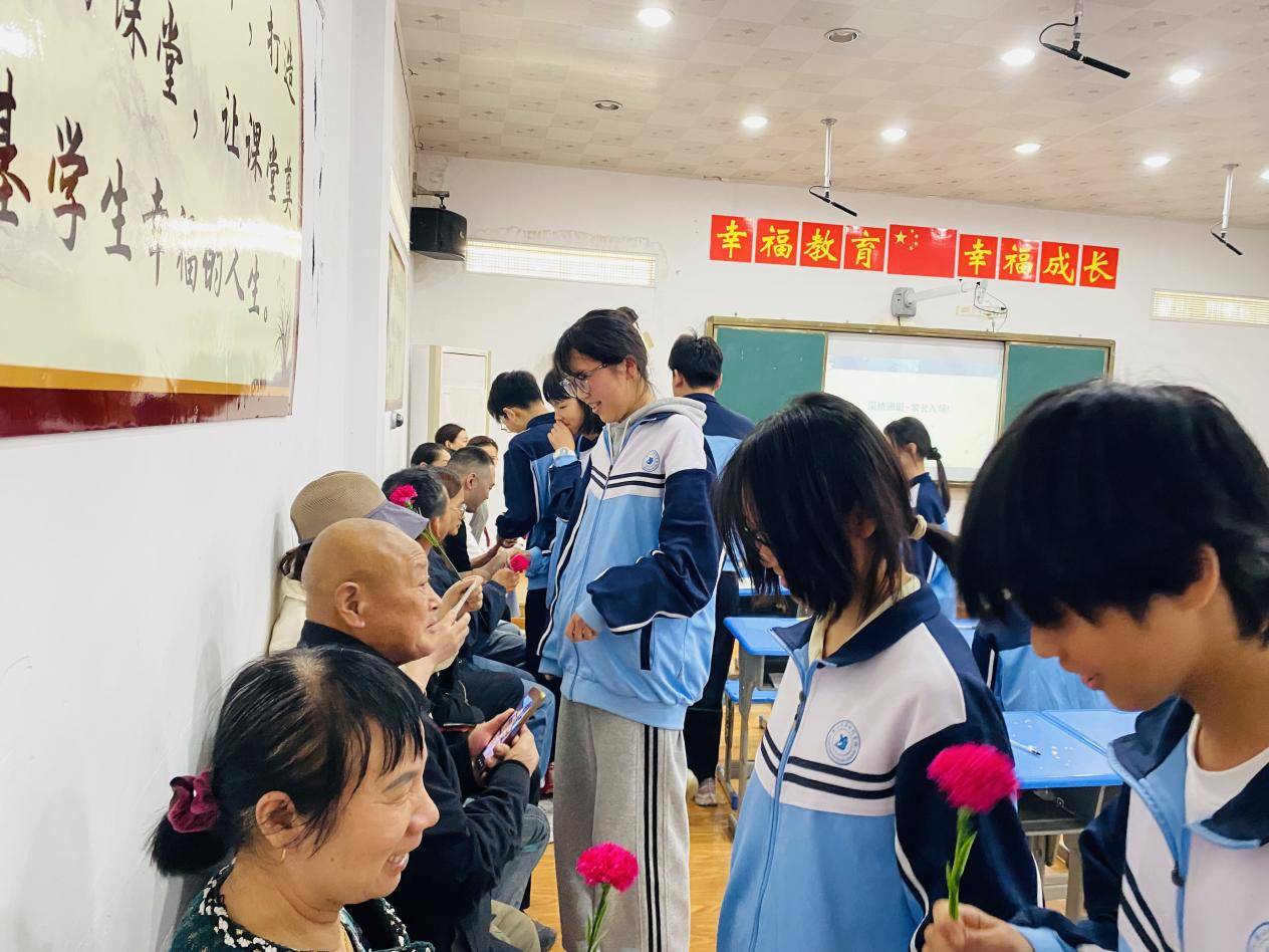 感恩于心,更践于行。同学们现场提笔书写心里话,把平日难以言说的感动与谢意落笔成文,倾诉心底真情。温情的家长入场环节,更是将课堂氛围推向高潮。学生们手捧提前准备好的鲜花,走向父母,将藏在心底的告白与祝福,连同手中的花朵一同递到父母手中。一束束芬芳的花束,承载着孩子的感恩与成长,也让家长们红了眼眶。在拥抱与低语中,课堂上的感悟化作了真切的行动,让感恩之心真正落到实处。