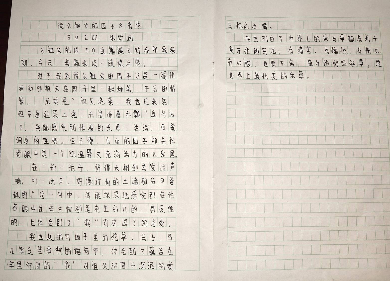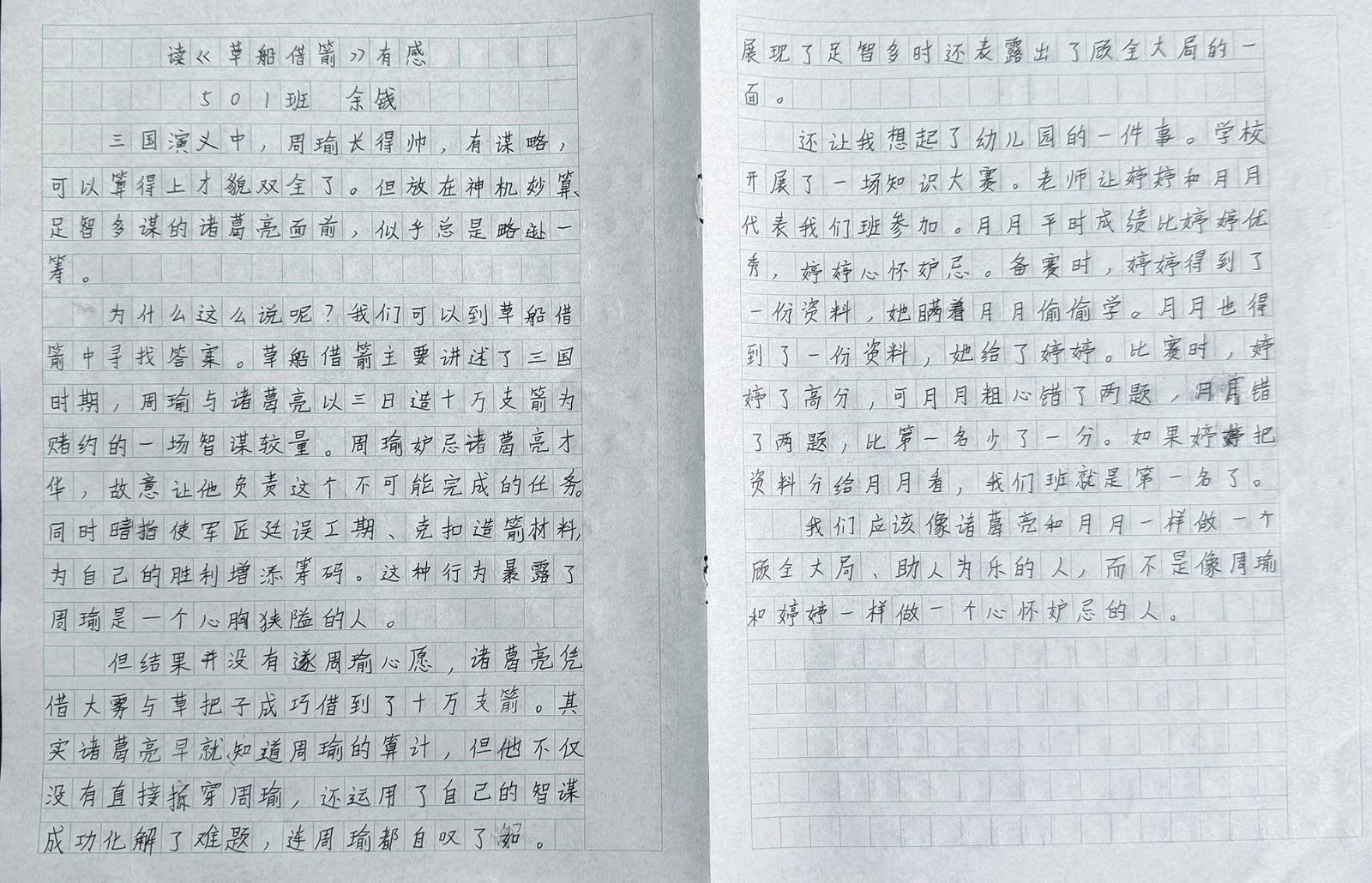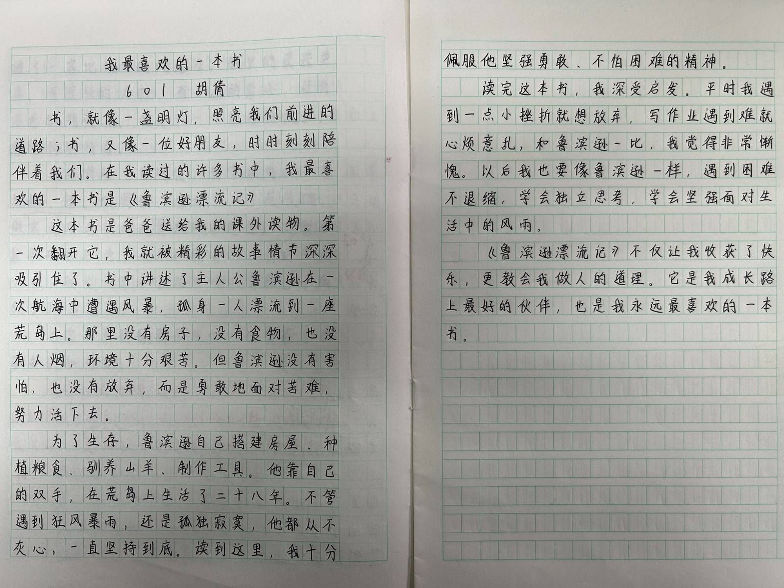 五、六年级开展“深度阅读,思辨创作”主题征文比赛。本次活动创新引入“导-师-制+”模式,每位语文教师担任5-6名学生的阅读导师,引导学生从“读内容”到“悟思想”。有同学在《阅读让我成长》中写道:“在导师的引导下,我开启了深度阅读之旅。重读《三国演义》,我不再只关注精彩的战争场面,而是学会分析人物性格与历史背景的关系。诸葛亮的‘鞠躬尽瘁’让我懂得责任的重量,关羽的‘义薄云天’让我理解诚信的价值。读《西游记》,我看到了师徒四人历经九九八十一难终成正果的坚持,孙悟空的勇敢无畏、猪八戒的憨态可掬、沙和尚的任劳任怨、唐僧的慈悲为怀,都让我深受触动。《祖父的园子》里那自由自在、充满生机的童年时光,让我感受到了亲情的温暖和大自然的美好。而《鲁滨逊漂流记》中鲁滨逊在荒岛上的顽强生存和乐观精神,更是教会我在面对困难时要坚韧不拔、积极向上。”