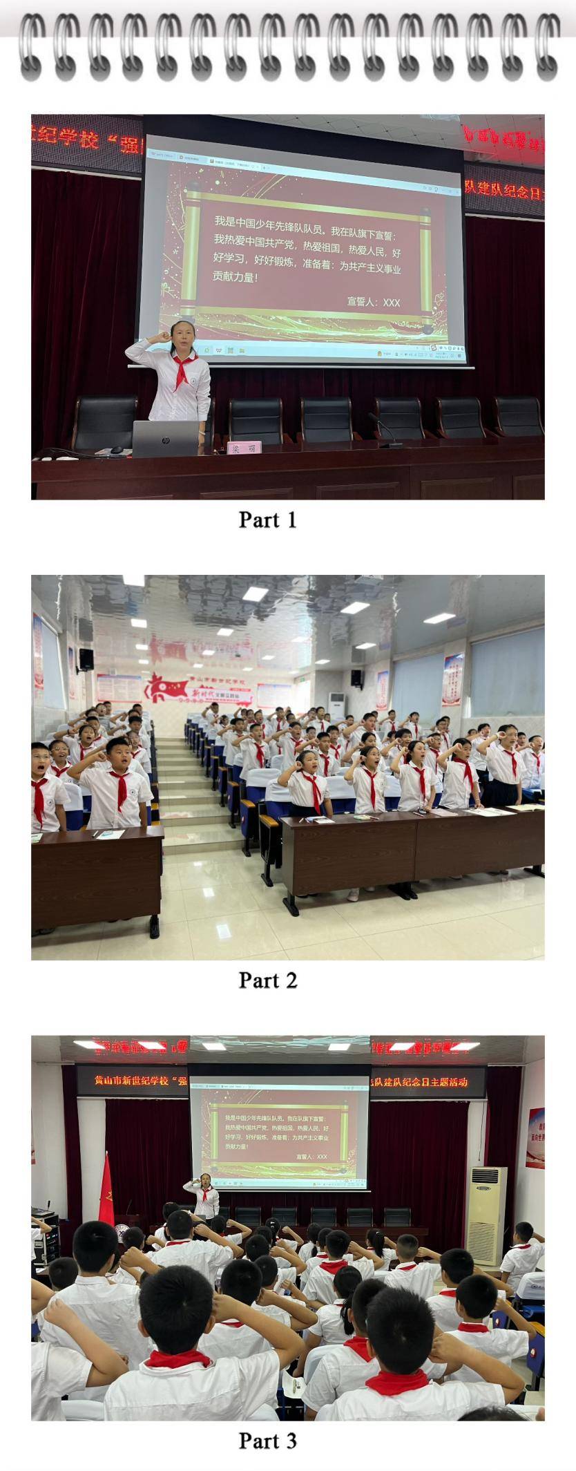 10月13日,在中国少年先锋队建队76周年之际,黄山市新世纪学校少先大队开展了以“强国复兴有我 争当新时代好少年”为主题的队会活动。少先队员齐聚一堂,通过沉浸式课堂体验、互动式学习交流等形式,共同庆祝少先队生日,传承红色基因,厚植家国情怀。