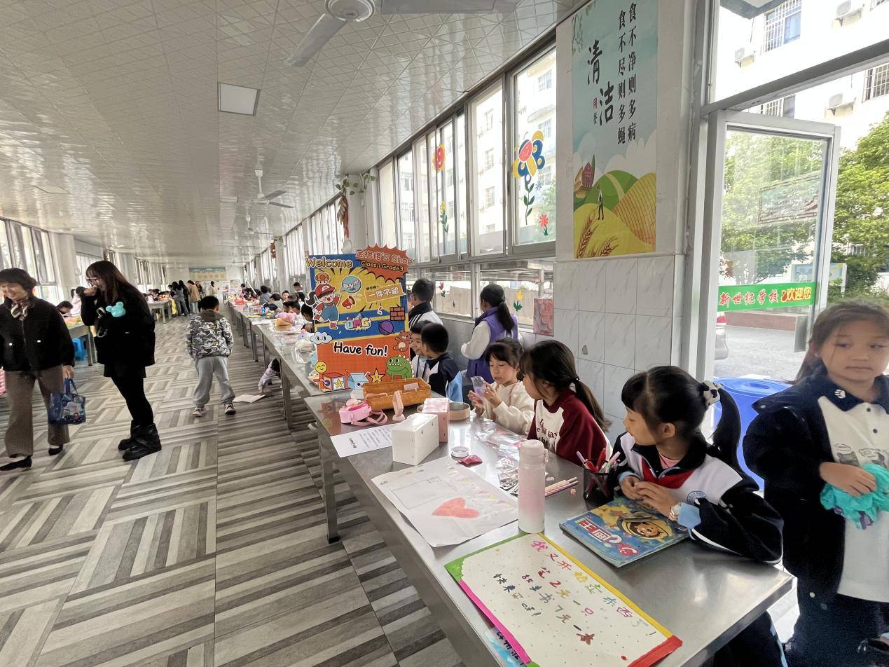 活动现场,校园的食堂内人头攒动,欢声笑语不绝于耳。各班摊位前,“小店主”们身着创意十足的英文标识服饰,热情地用英语招揽“顾客”。叫卖声、询价声、交谈声,汇成了一曲生动的英语交流交响乐:Can I help you?(我能帮助你吗?)How much is it?(这个多少钱?)Two yuan......