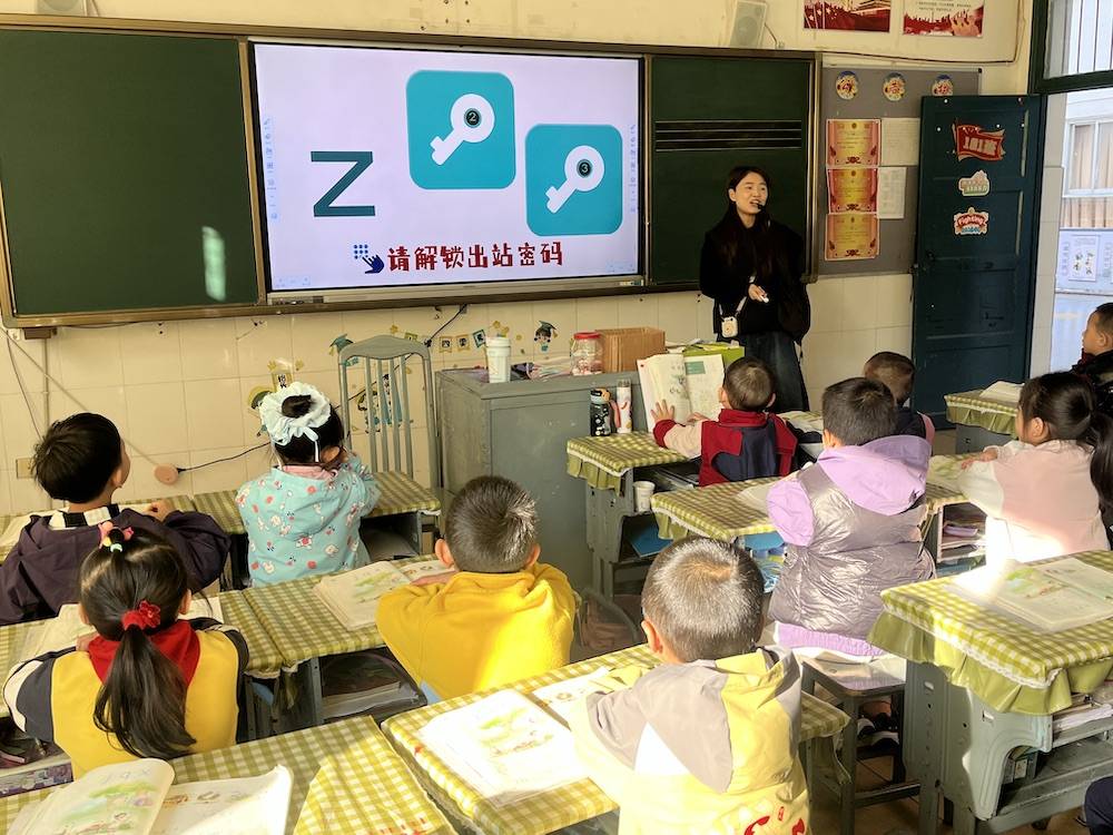 课堂伊始,叶老师以“回顾旧知,解锁站点密码”的方式巧妙导入,迅速点燃学生的学习热情,为整堂拼音课拉开了一场趣味探索的序幕。
